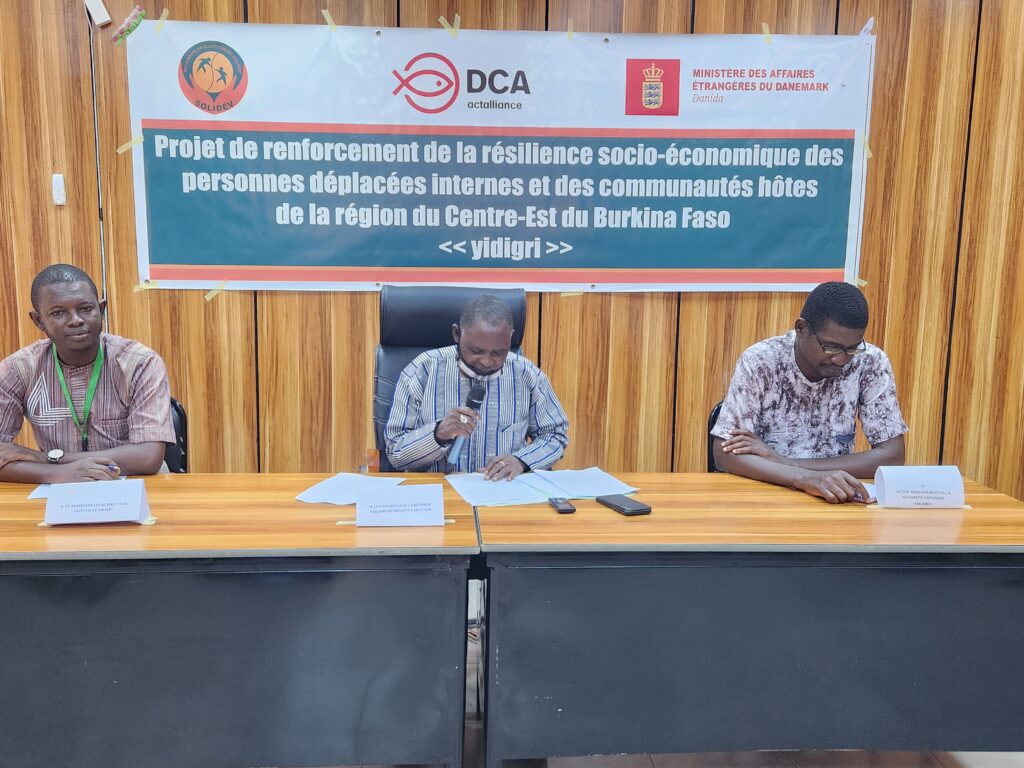La cรฉrรฉmonie officielle de lancement sโest tenue le 24 septembre 2025 au Centre dโinnovation de la commune de Tenkodogo, en prรฉsence des autoritรฉs administratives, des partenaires techniques, des ONG sลurs ainsi que des reprรฉsentants des communautรฉs dรฉplacรฉes internes et hรดtes bรฉnรฉficiaires. Cette activitรฉ visait ร renforcer la visibilitรฉ du projet, dโassurer la redevabilitรฉ et favoriser son appropriation locale.